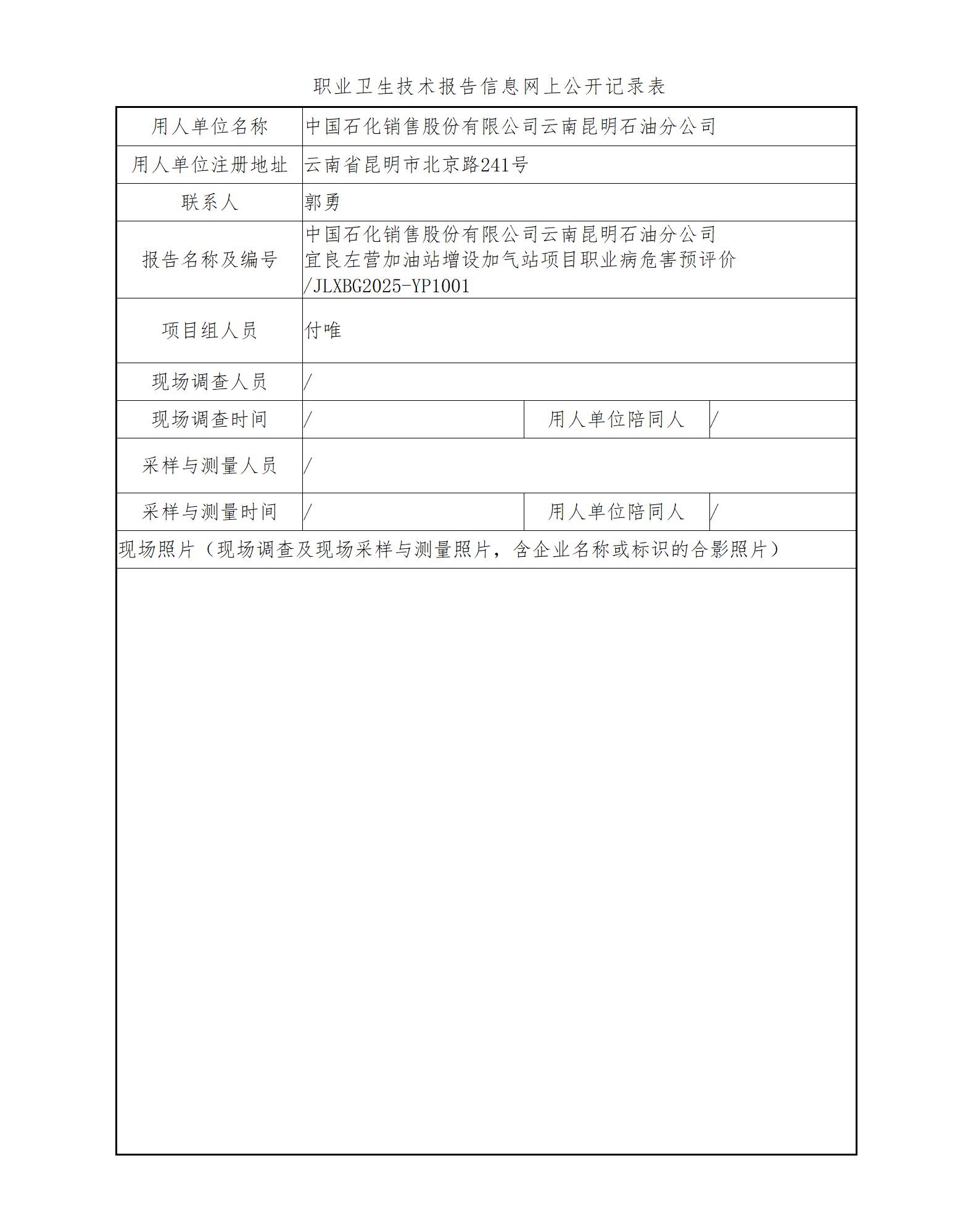 中國石化銷售股份有限公司云南昆明石油分公司宜良左營加油站增設加氣站項目職業病危害預評價