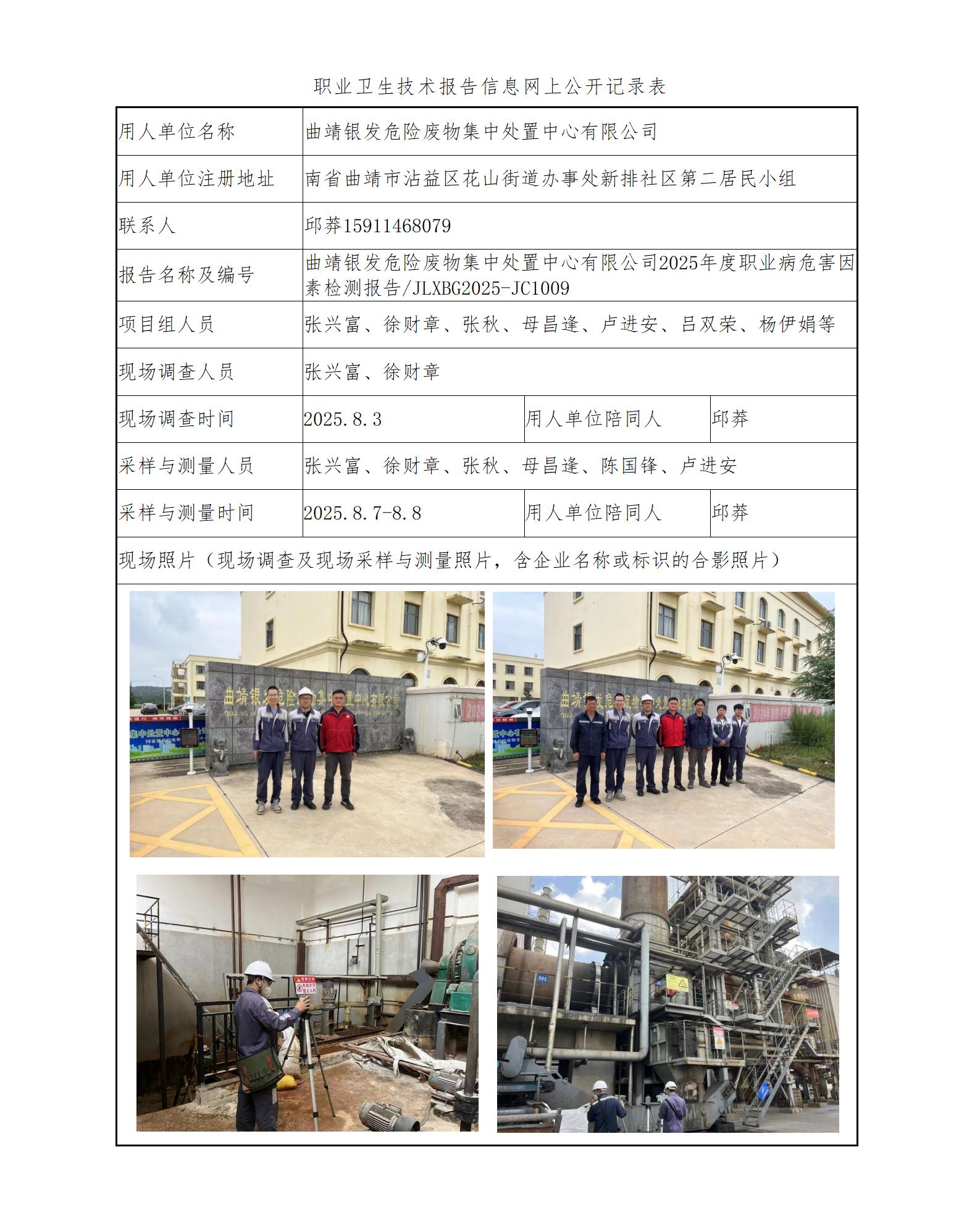 曲靖銀發(fā)危險(xiǎn)廢物集中處置中心有限公司2025年度職業(yè)病危害因素檢測報(bào)告