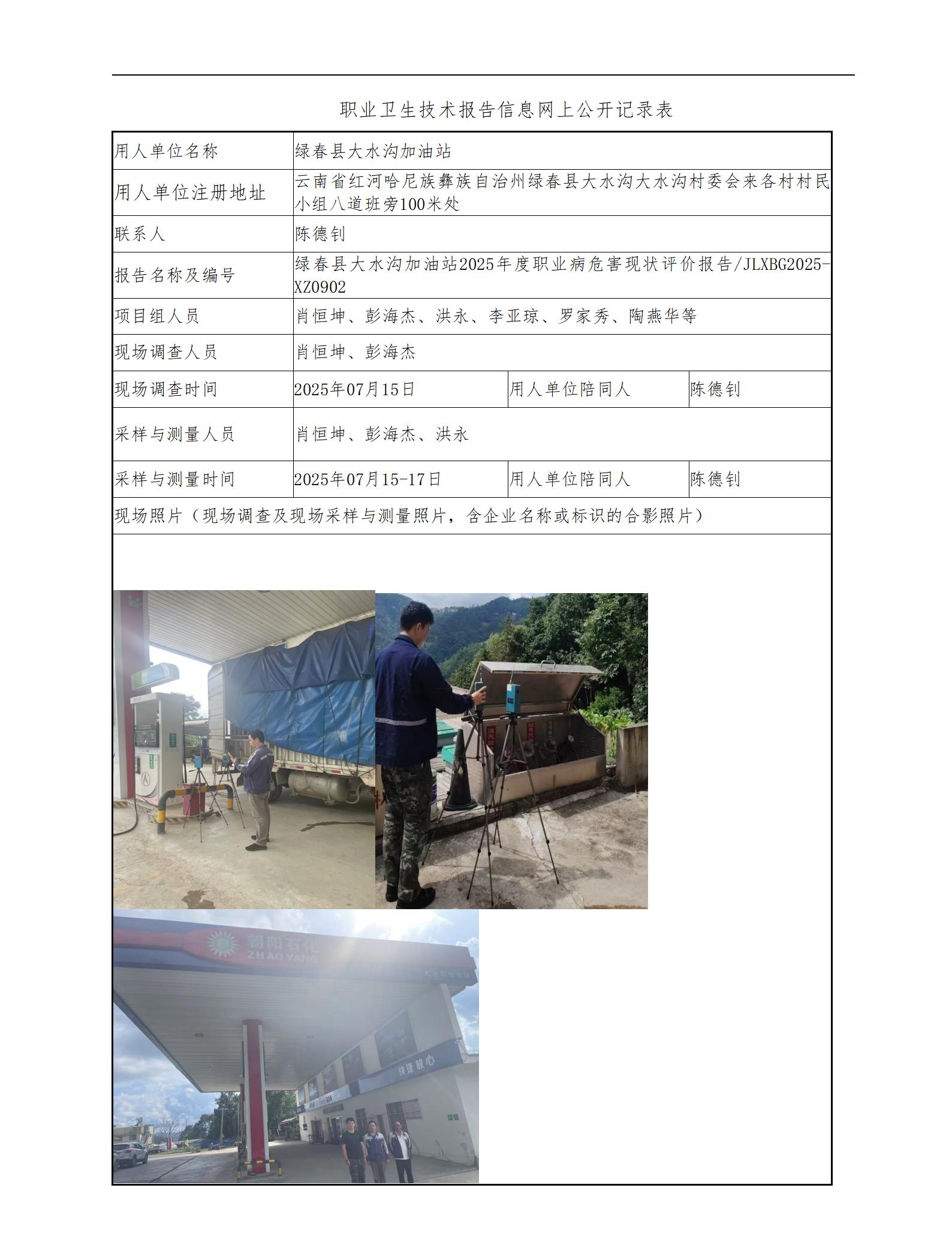綠春縣大水溝加油站2025年度職業(yè)病危害現(xiàn)狀評價報告