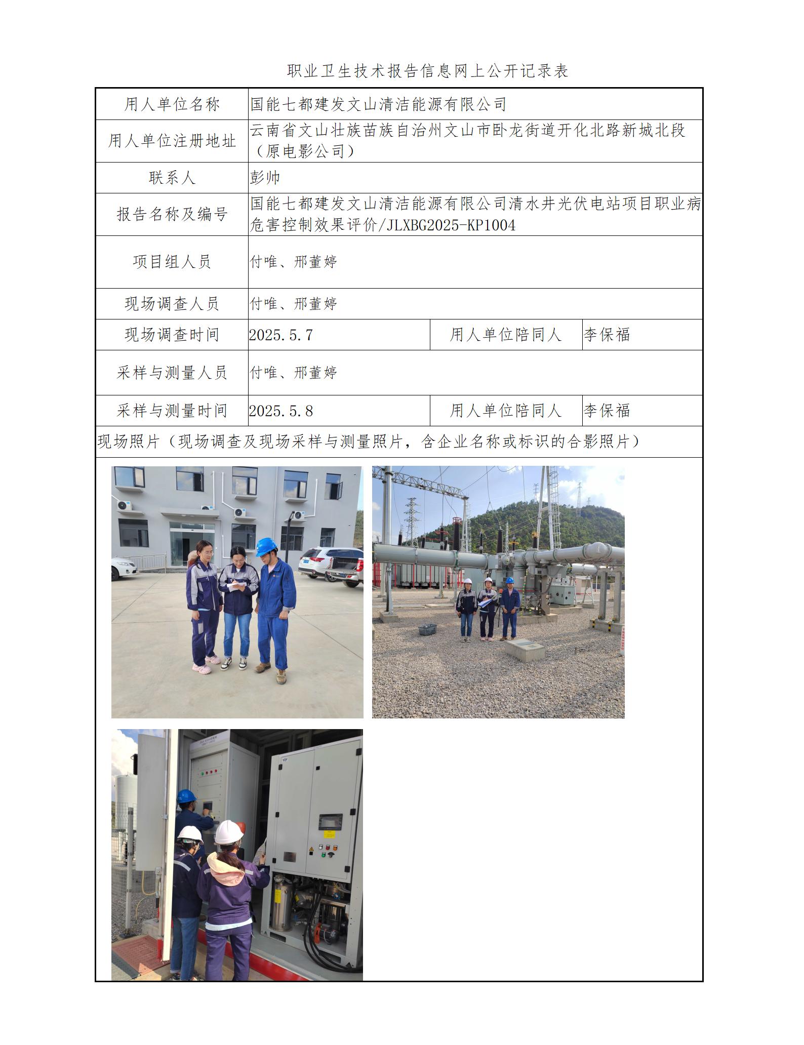 國能七都建發(fā)文山清潔能源有限公司清水井光伏電站項(xiàng)目職業(yè)病危害控制效果評價(jià)