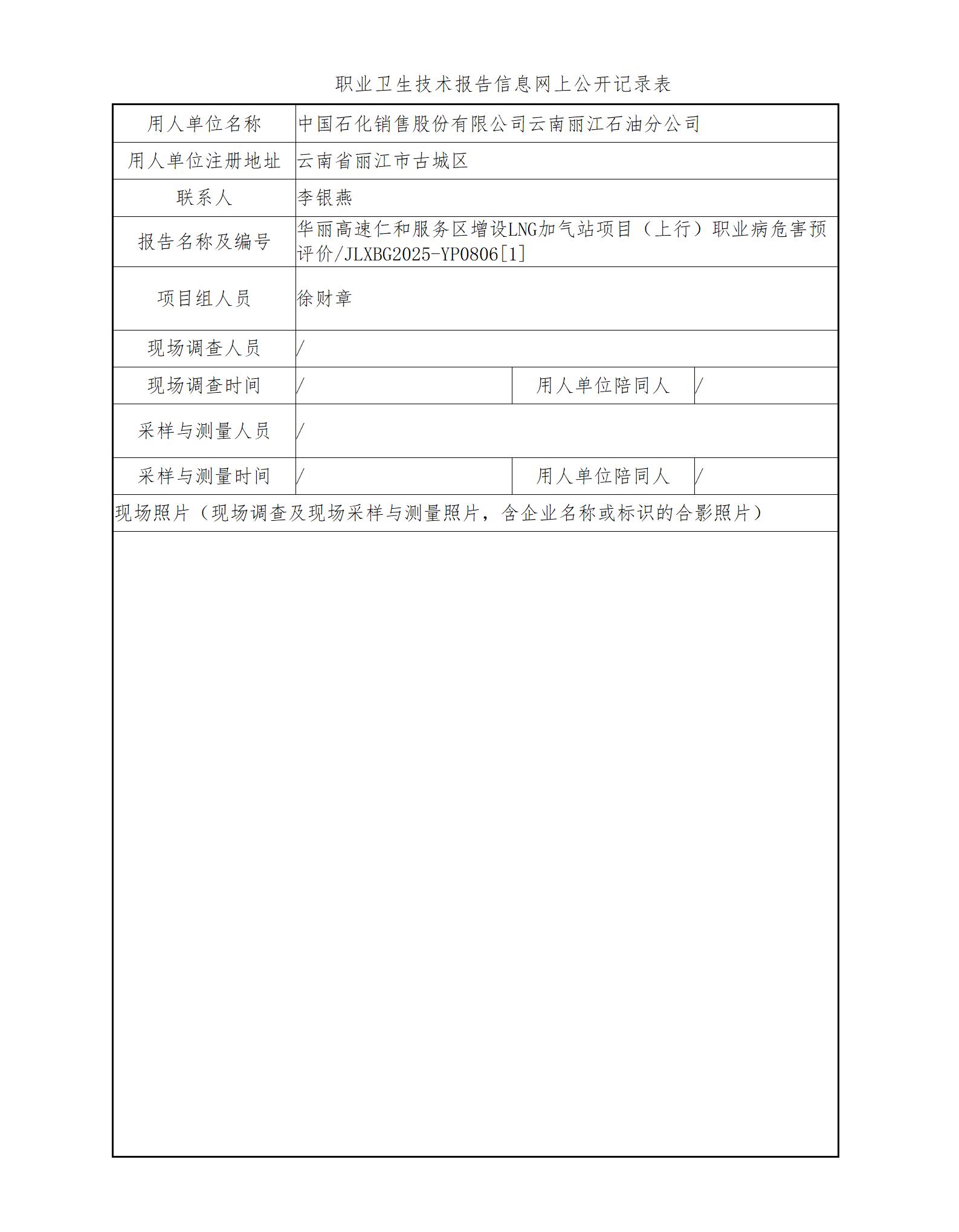 華麗高速仁和服務(wù)區(qū)增設(shè)LNG加氣站項(xiàng)目(上行)職業(yè)病危害預(yù)評(píng)價(jià)